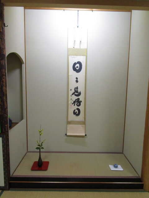 先日、茶道研修の一環として、亭主側と客側に分かれ『春を待つ茶会』を行いました。