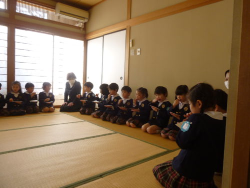 こどもたちは、年長組での茶道の時間も楽しみにしながら、進級することに、より期待が高まっているようでした。