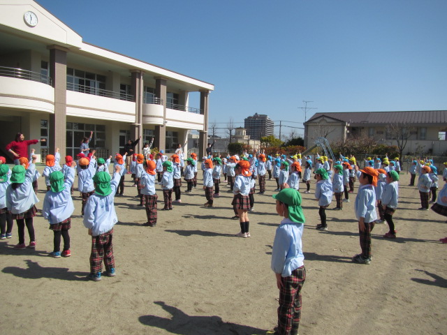 - 戸外では準備体操をして身体を動かします
