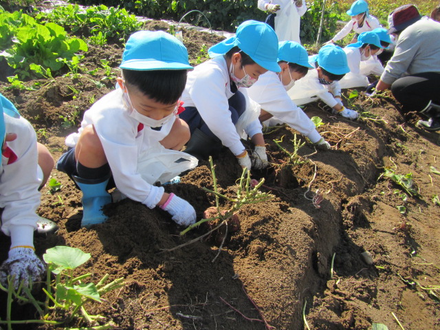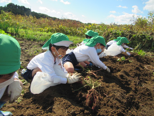 収穫したさつまいもは来週にある収穫祭で焼き芋にしていただくことを伝えると、「早く食べたいな。」と期待に胸を膨らませていました。