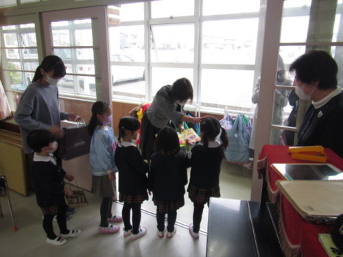 こどもたちは、帰りには新しいクラスの名札を方に着けてもらい、新生活への期待に胸を膨らませながら、にこにこ笑顔で帰っていきました![]()