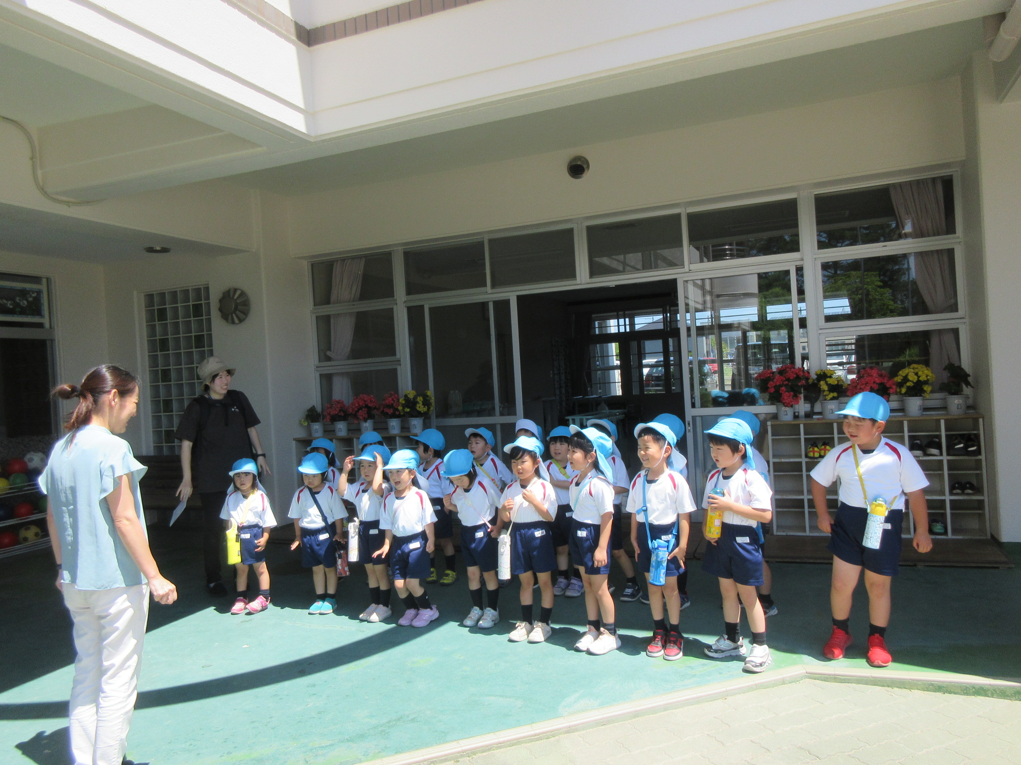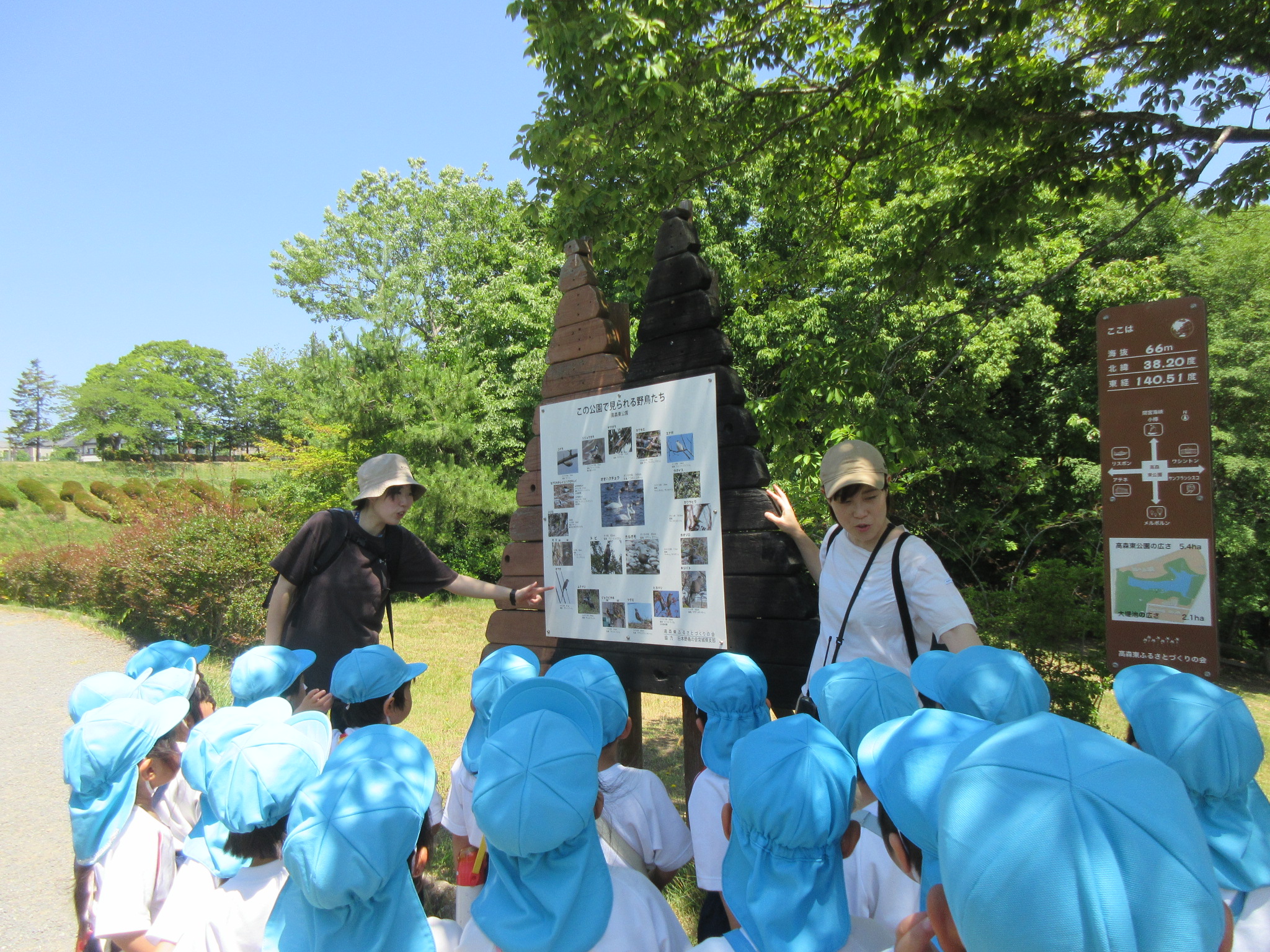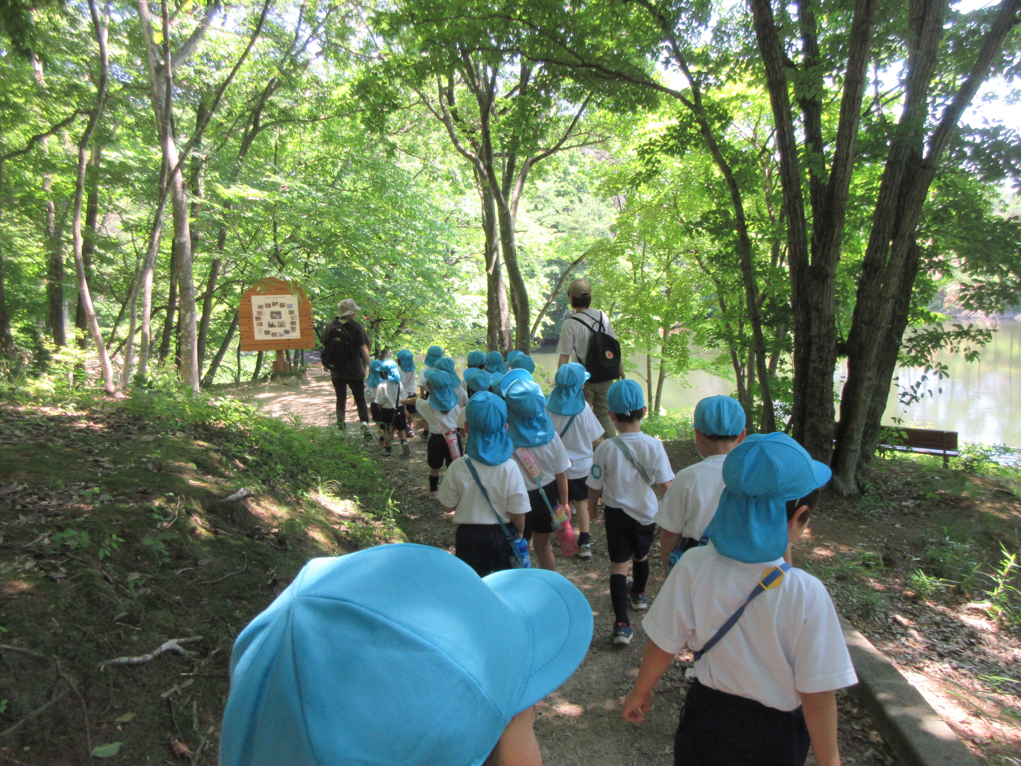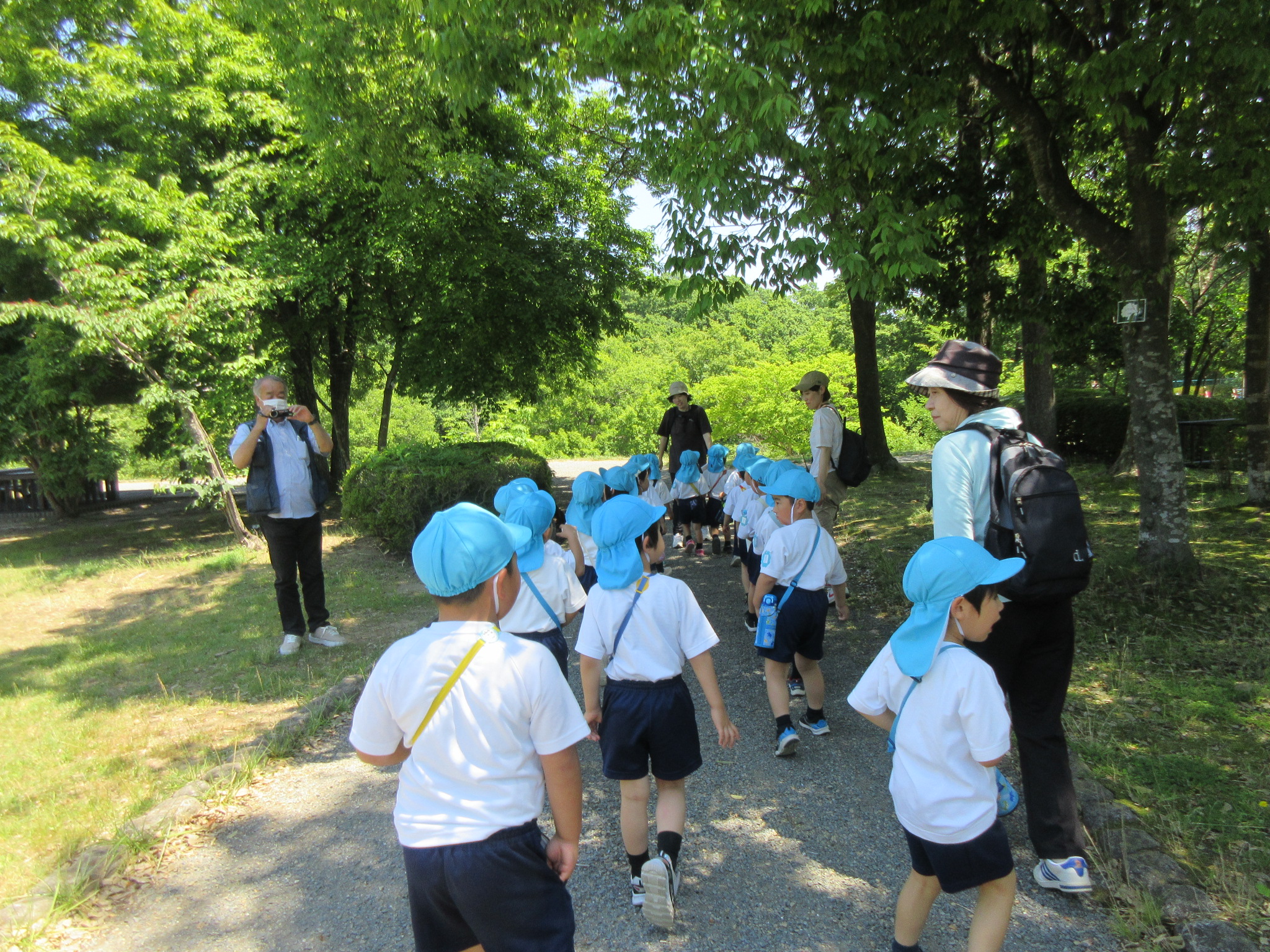 こどもの国幼稚園の年中組では、高森東公園に出かけてきました。年中組になって初めての園外保育にこどもたちは「バスに乗るんだよね!」「公園で鬼ごっこをしよう!」と期待を高めていました。公園に散策をすると大きな鳥や魚、珍しい色のとんぼを見つけるとこどもたちからは「わぁ!」と歓声が聞かれ、「なんて名前なんだろう?」と話題が上がりました。また広場で鬼ごっこも楽しみました。お弁当は園に戻り、年長組さんと一緒にいただきました。こどもたちからは「楽しかった!」と感想があり、来週のさつまいも畑の草取りにも期待を高めているようです!