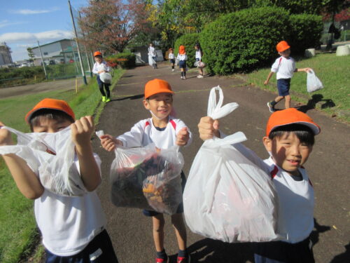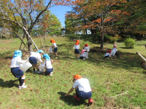 拾ってきた落ち葉はやきいも会で使うので、こどもたちは「やきいも会の日までにもっと集めよう!」と張り切っていました。