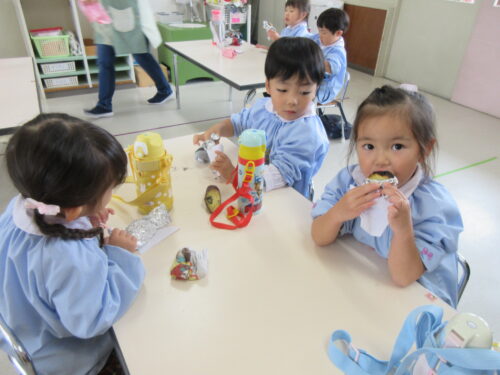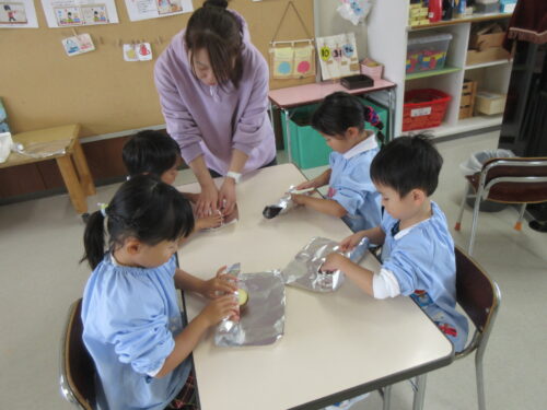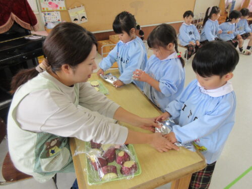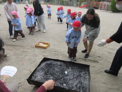 こどもの国幼稚園でやきいも会をしました。先日いもほりでさつまいもを掘ってきてから、「早くやきいも食べたいな」とやきいも会を楽しみにしていました♫