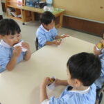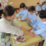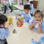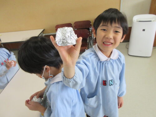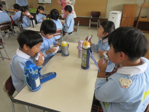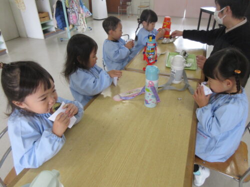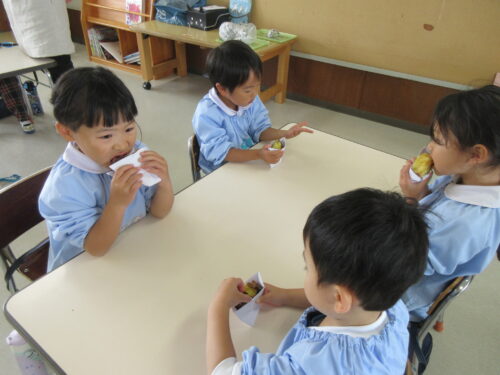 出来上がったホクホクのやきいもを食べると「とっても甘くておいしいね」とニコニコの笑顔が見られ、ここまで育てたさつまいもをおいしくいただくことができ、とても楽しいやきいも会となりました♪