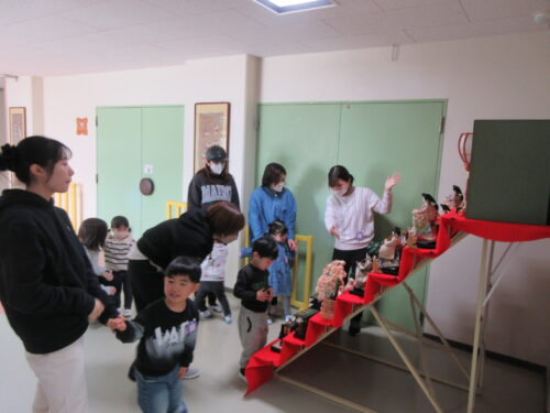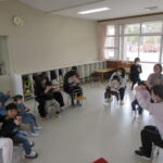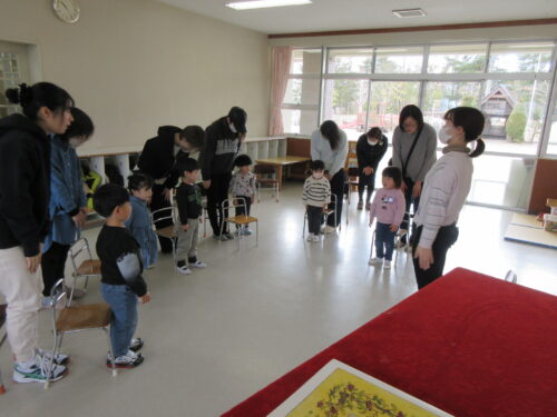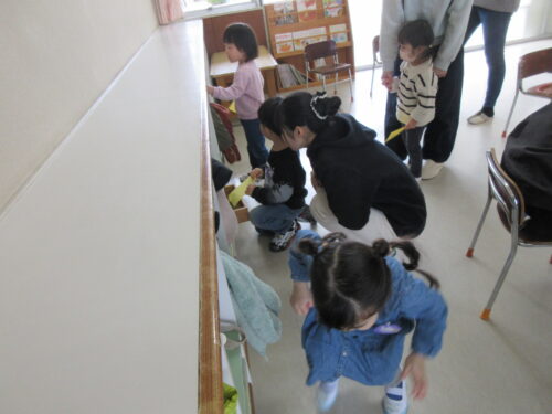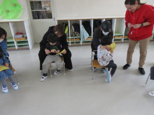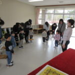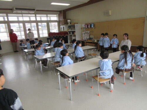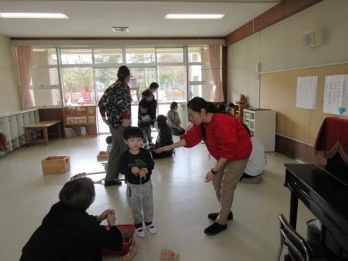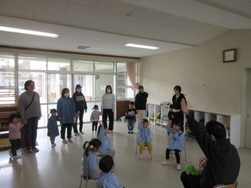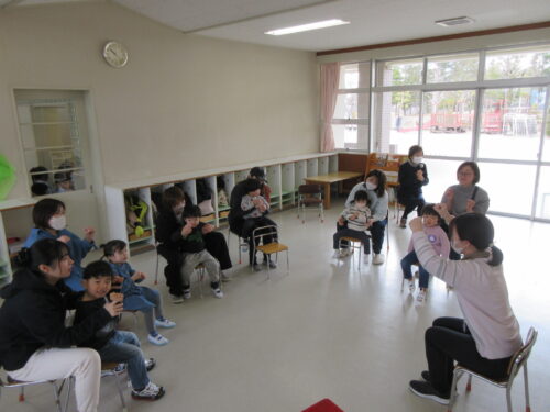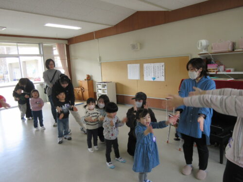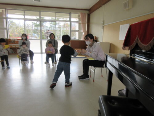 こどもの国幼稚園で来年度入園するお子さんと保護者を対象とした『なかよしきっず』がありました。こどもたちはうたを歌ったり出席カードにシールを貼ったりして幼稚園での集まりに参加しました。その後は幼稚園探検を行い、お兄さんお姉さんのクラスに遊びに行くと、集まりや製作の様子を見て興味をもったりあいさつをしてもらって微笑んだりする姿が見られました♫少しでも幼稚園の雰囲気を味わえたのではないかと思います。来月の一日入園や4月からの入園を心からお待ちしております♪