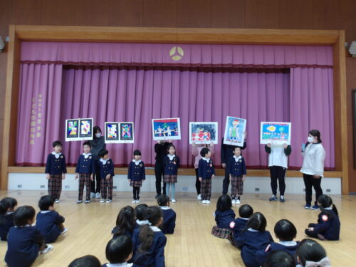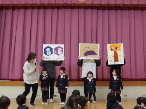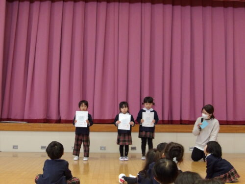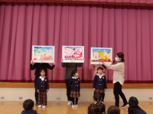 こどもの国幼稚園で「第51回親と子と教師の絵画展」に出展した作品の表彰を行いました。表彰されたこどもたちは「家族みんなで見にいったよ」「お友達の絵も飾ってあったよ」と嬉しそうに話をしていました。賞状を受け取るとたくさんの拍手をもらい、誇らしげな様子が見られました。今後もこどもたちの豊かな表現を大切にしていきます。
