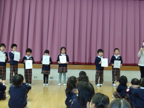 - 賞状をみんなに見せました