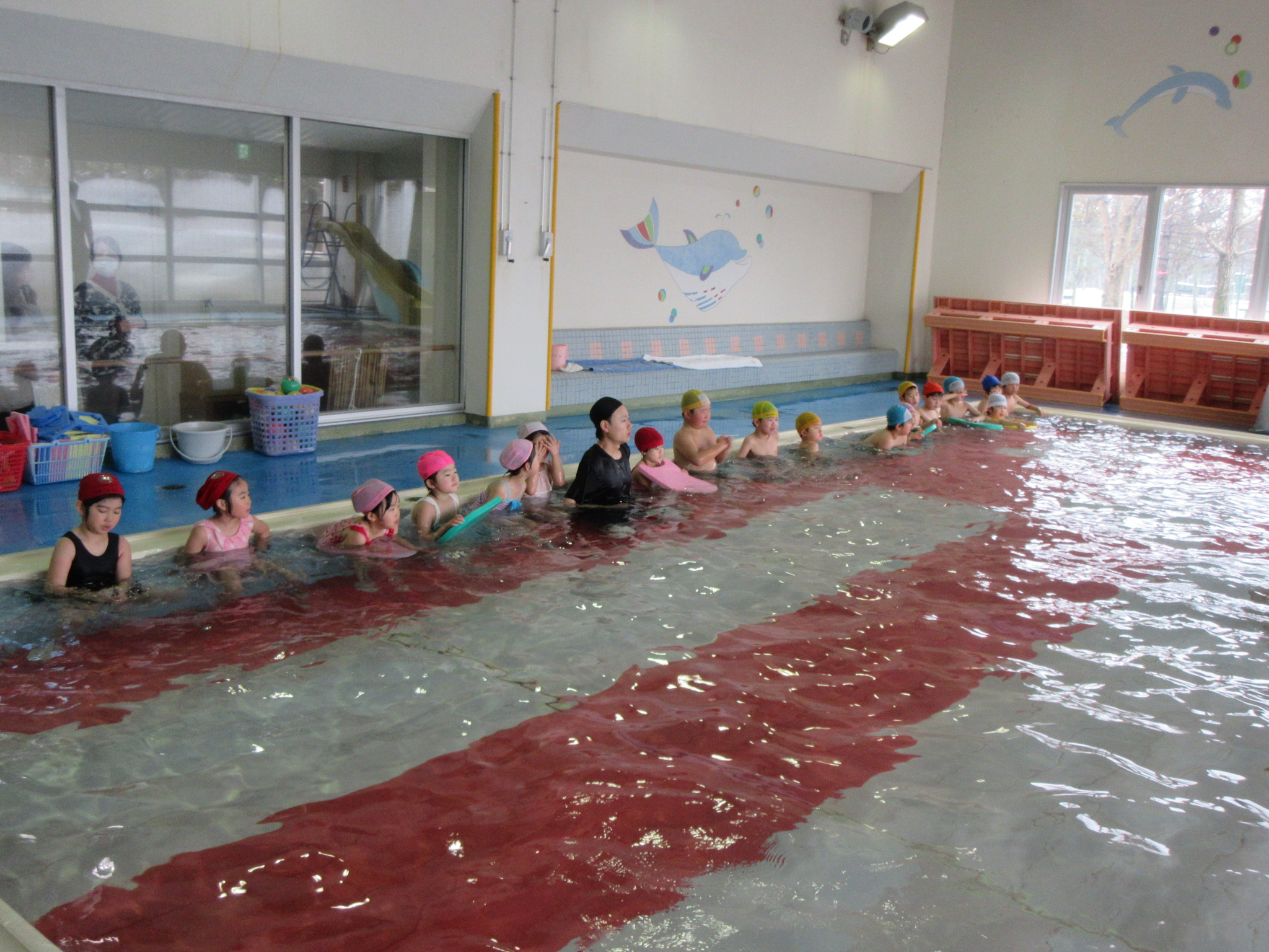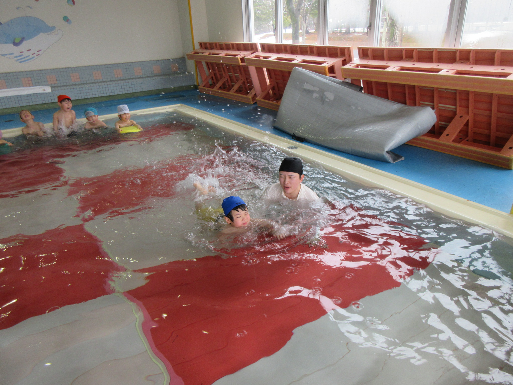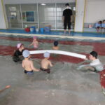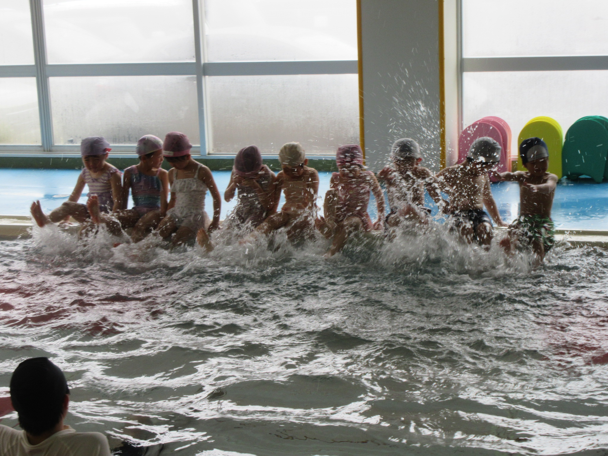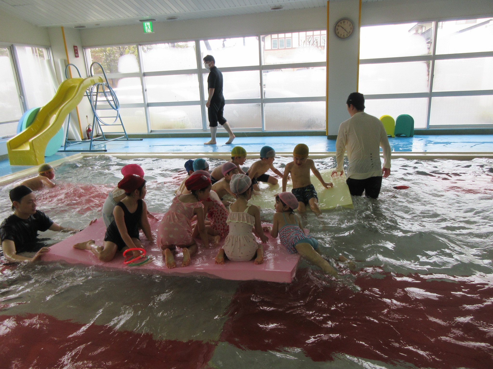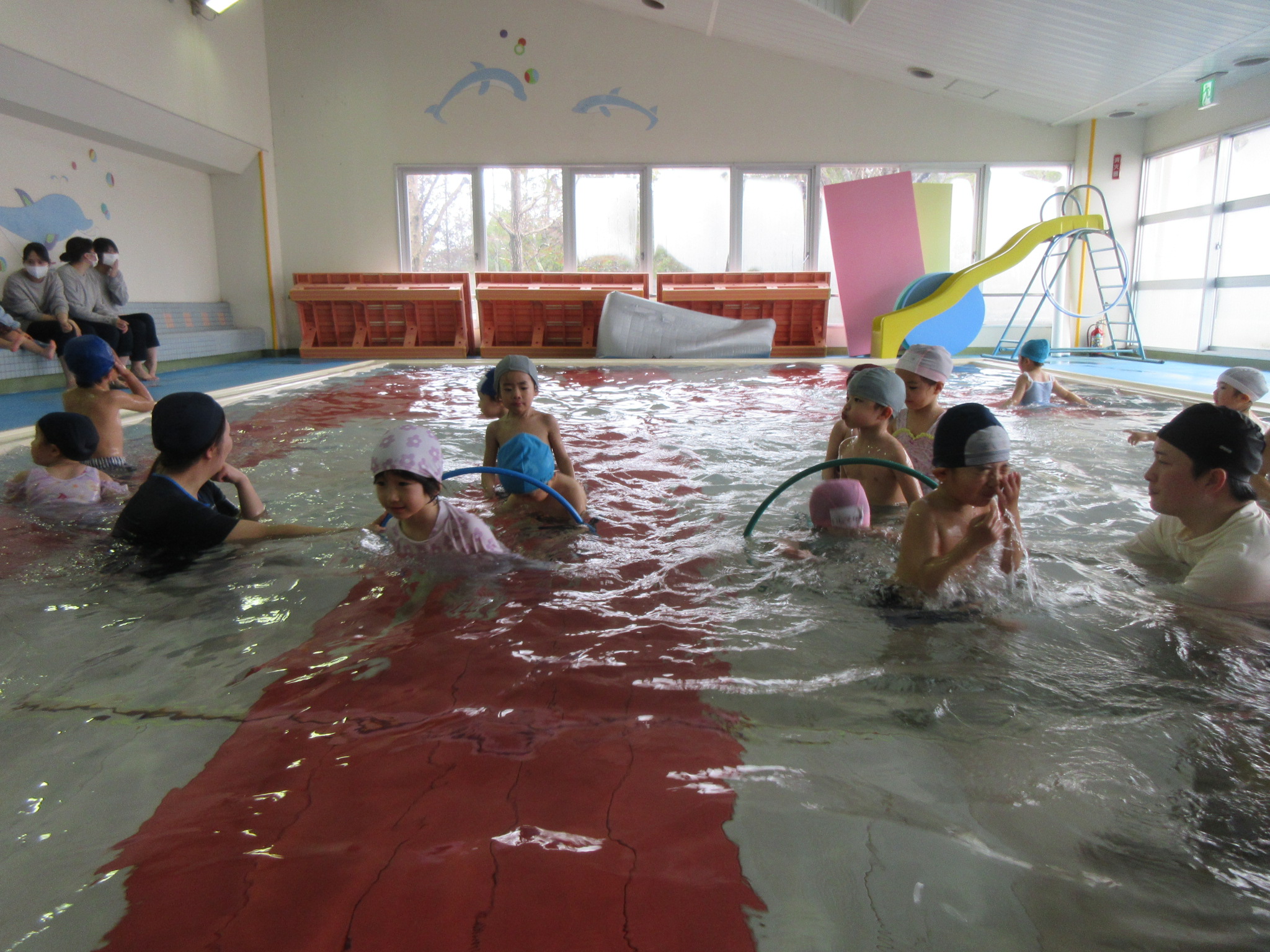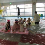 こどもの国幼稚園では園内にある温水プールで、週に一度プールの活動があります。今日は今年度のプール活動の最終日でした。こどもたちは活動を通して潜れるようになったり、ビート板を使って泳げるようになったりと楽しみながら色々なことができるようになりました。「早くまたプールに入りたいな」という声も聞かれ、プール活動はこどもたちが大好きな時間になっています♪