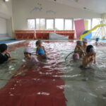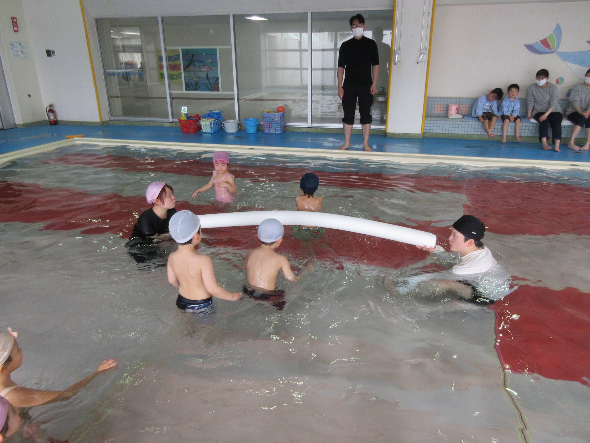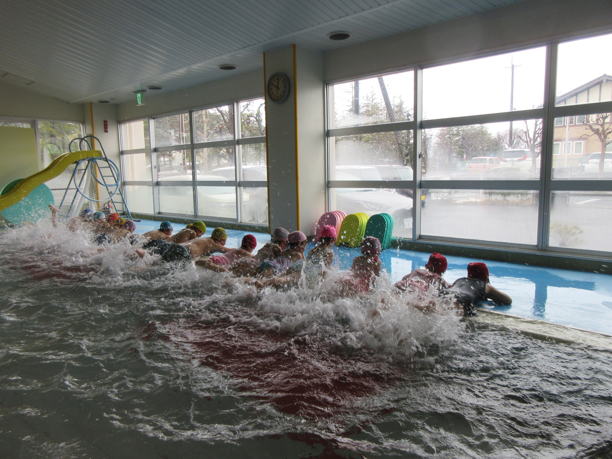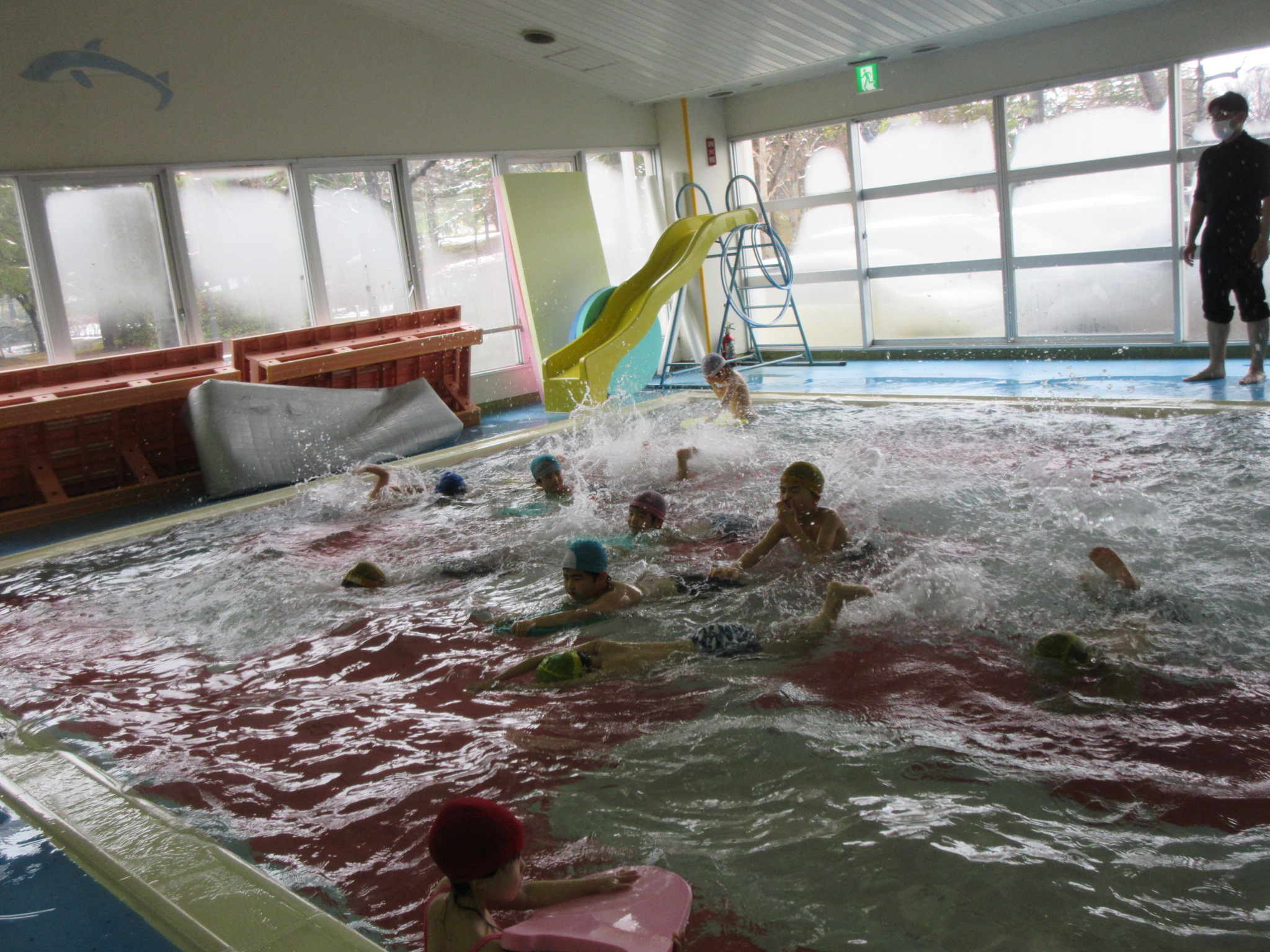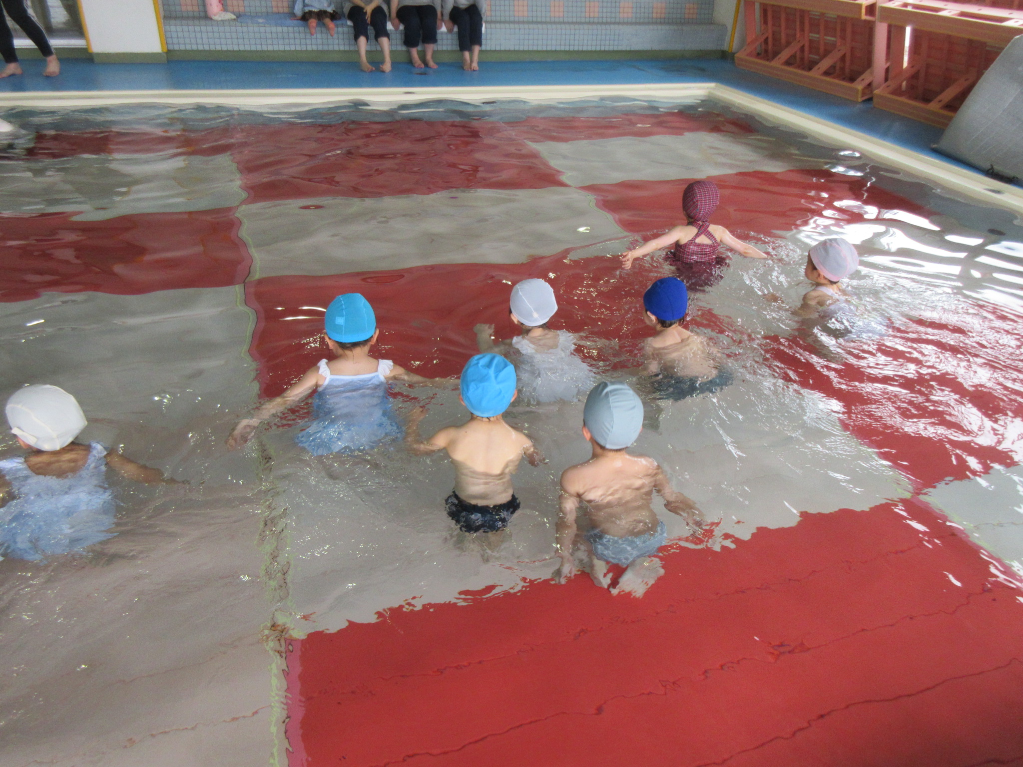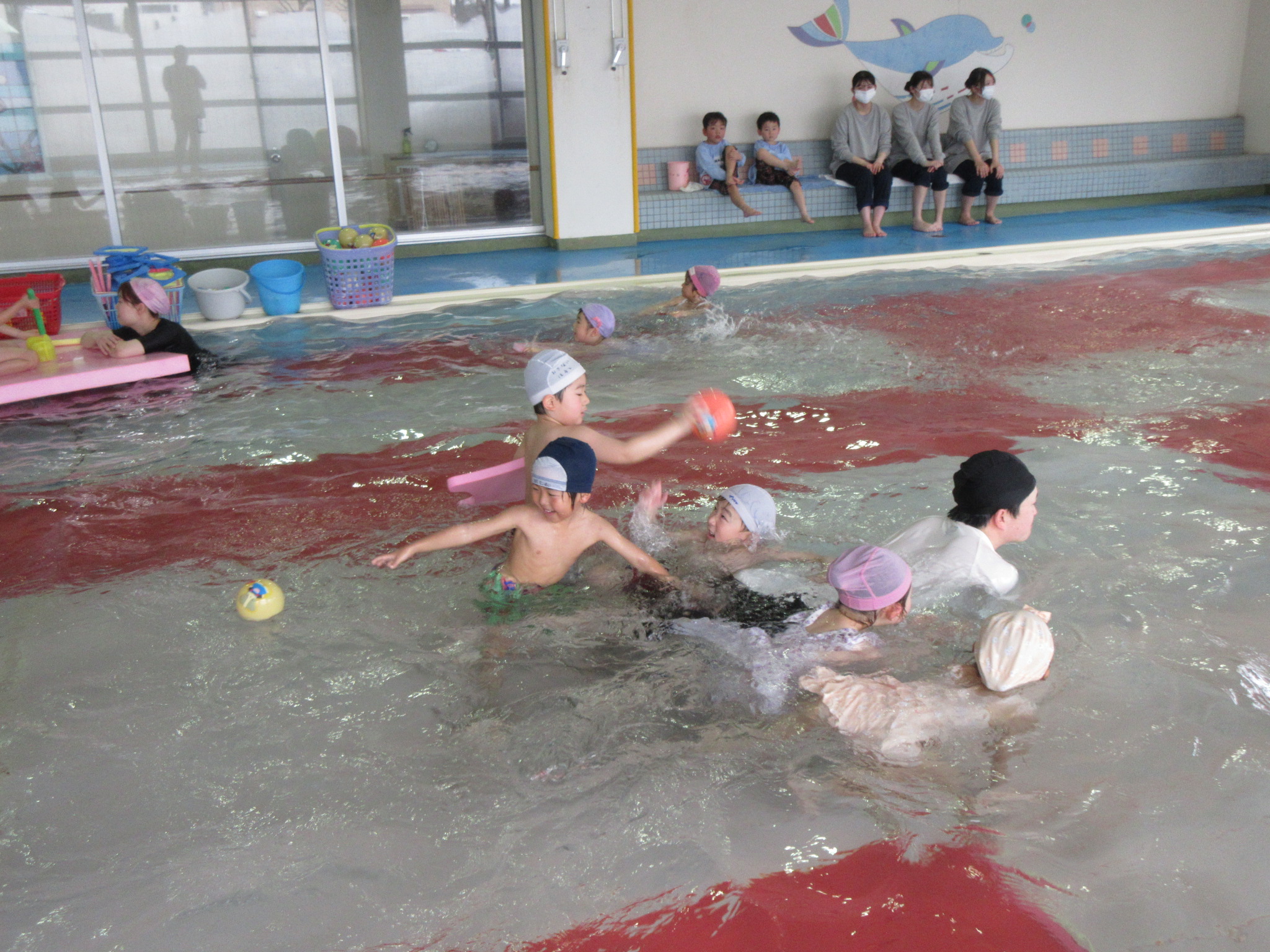 こどもの国幼稚園では園内にある温水プールで、週に一度プールの活動があります。今日は今年度のプール活動の最終日でした。こどもたちは活動を通して潜れるようになったり、ビート板を使って泳げるようになったりと楽しみながら色々なことができるようになりました。「早くまたプールに入りたいな」という声も聞かれ、プール活動はこどもたちが大好きな時間になっています♪