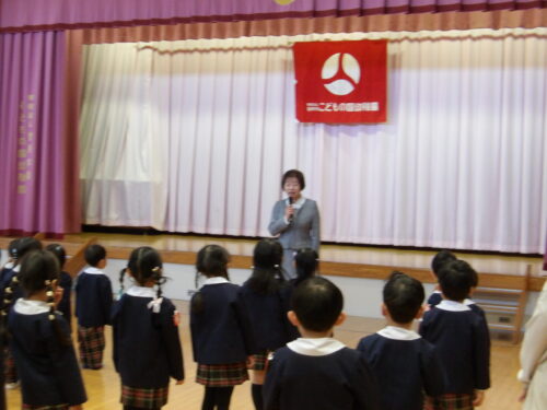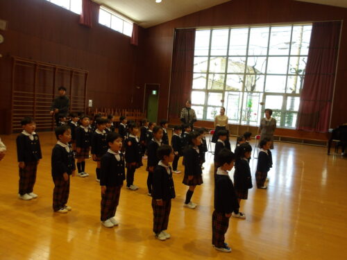 こどもの国幼稚園で令和8年度の始業式を行いました。春休みを終え、今日から新しいクラスや新しい担任の先生と過ごし、ドキドキしている様子や期待が高まっている様子が見られました。始業式では、園長先生から「目と耳で話を聞きましょう」とお話をいただき、さっそく立派に参加できていました。他にも、うたを歌ったり、代表のお友達に「1学期楽しみなこと」を発表してもらいました。今年度もこどもたちが笑顔で元気に園生活を過ごせるよう、職員一同保育を行ってまいります。